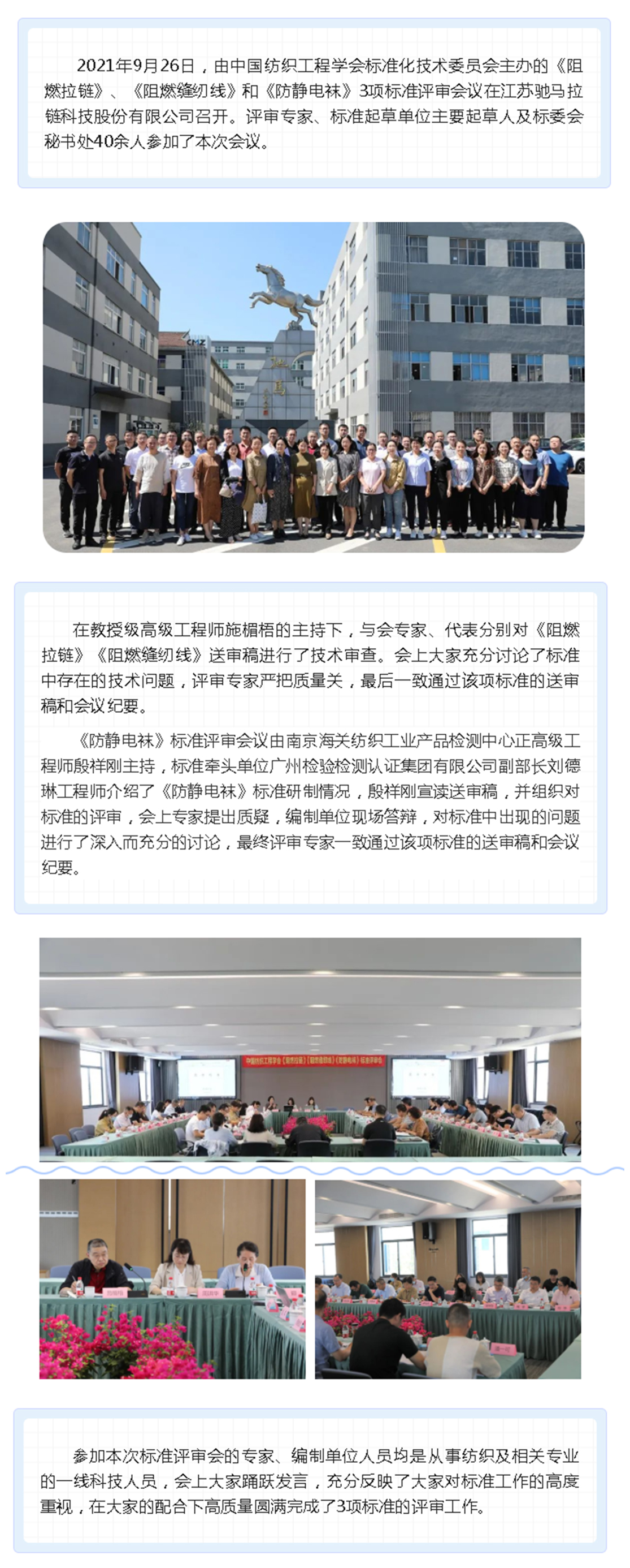 中國(guó)紡織學(xué)會(huì)標(biāo)準(zhǔn)評(píng)審會(huì)議在馳馬拉鏈順利召開(kāi)