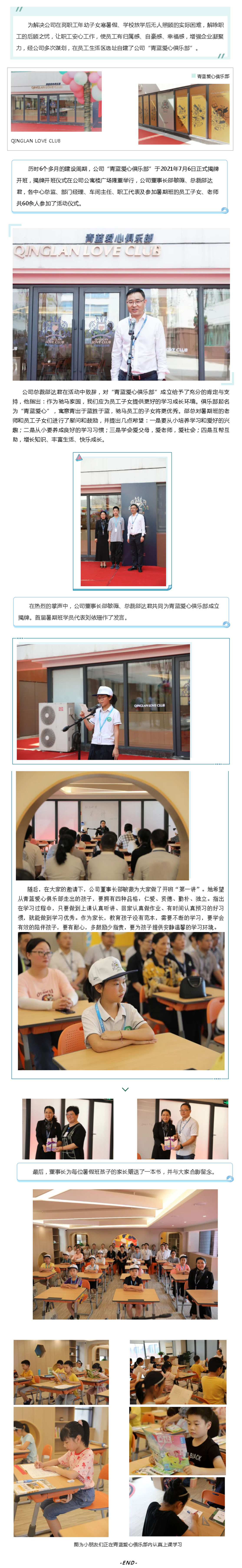 公司舉行“青藍(lán)愛心俱樂部”成立揭牌暨暑假開班儀式