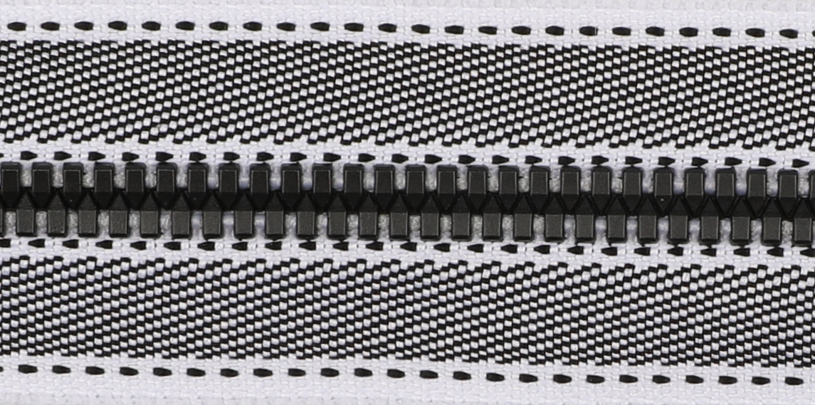 彩帶拉鏈的織法工藝,特別是有些彩帶效果,相比常規(guī)布帶布邊強(qiáng)度略低,較為松散,且彩帶層和原色層,因經(jīng)緯關(guān)系,存在輕微的透底現(xiàn)象,彩帶寬度尺寸無法做到完全統(tǒng)一。