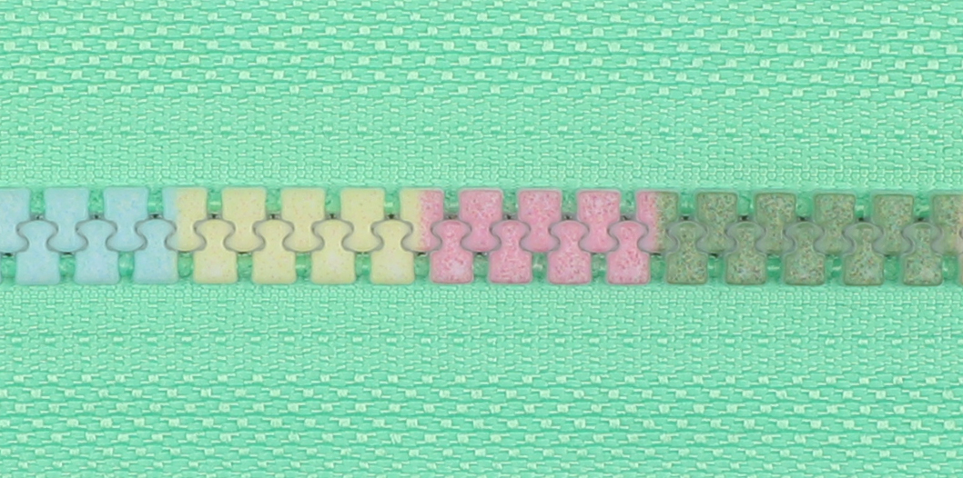 此拉鏈采用熱轉印工藝,直接將印花效果印在樹脂拉鏈鏈牙及布帶上,讓熱印效果更加有立體感;整個熱轉印效果不會因鏈牙與布帶不在統(tǒng)一維度上產生不匹配隱患。