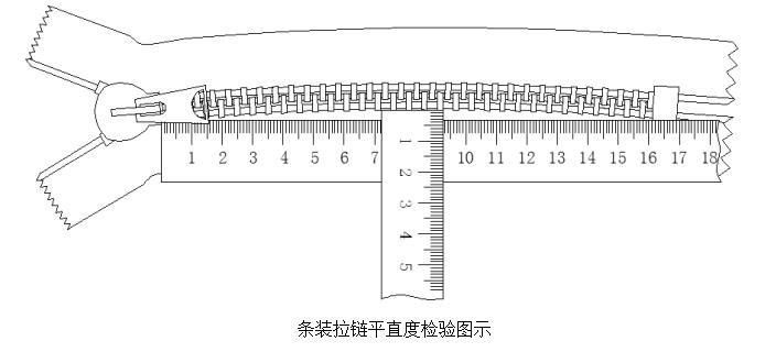 將成品拉鏈平放在平整的平臺上,使其處于拉合的自然狀態(tài),然后進行測量如下圖:
