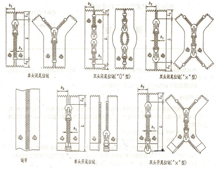“O”型閉尾拉鏈和“X”型閉尾拉鏈。見圖1